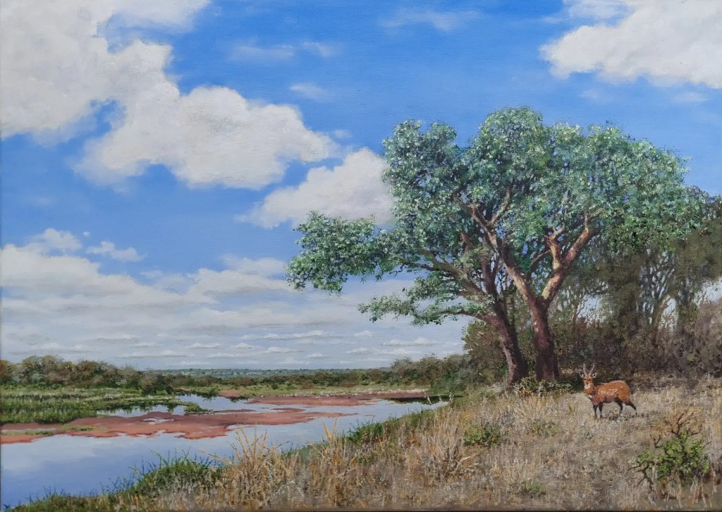 Letaba river, Kruger National Park. Oil on canvas 20″×16″ Private collection.